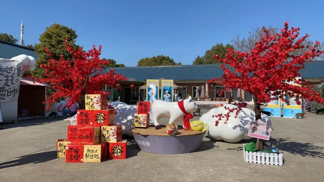 位于顾村镇盛宅公园的“上海城市猫岛”,作为上海城市流浪猫管理中心、宝山区文明养宠宣传教育示范基地,早已被浓浓的年味包裹。网红“猫猫墙”上红灯笼与萌猫涂鸦相映成趣,草坪上“喵星祈福牌”静待市民书写心愿,400余只软萌猫咪或慵懒晒太阳,或互相追逐嬉戏,为新春增添了一抹治愈气息。