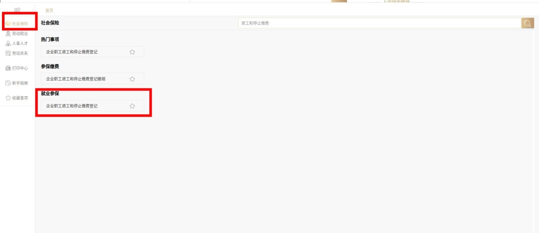 在首页搜索“退工和停止缴费”