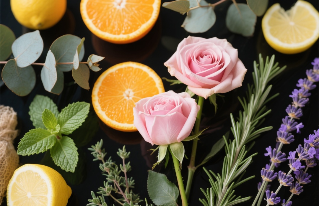 玫瑰、橙子、桉树、