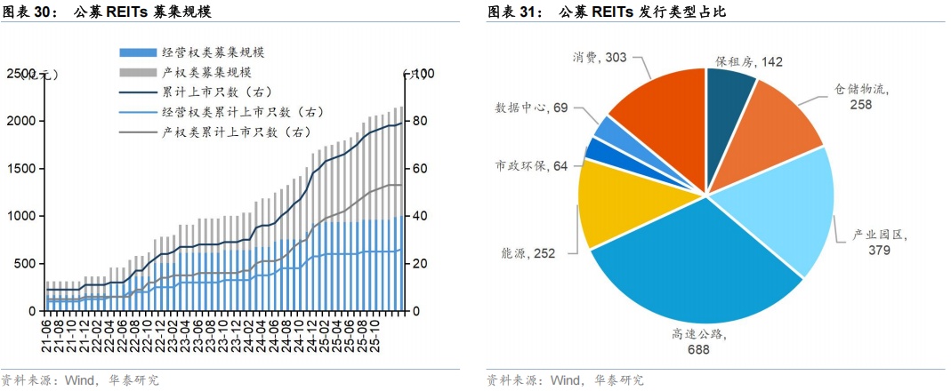 我国公募REITs募集规模与发行类型占比 图源:华泰证券