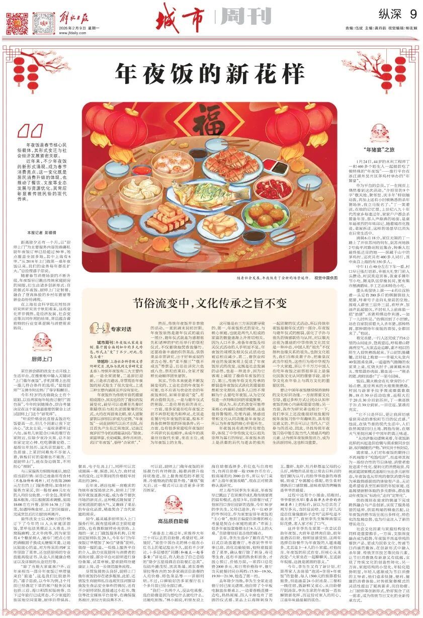 城市周刊:年夜饭从家庭自制、餐厅圆台面到如今的多元外包,形式上“变”了不少,对此,您怎么看?