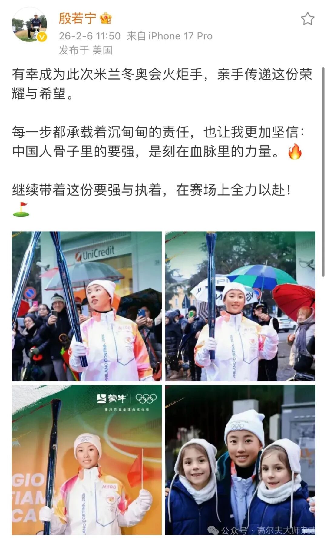 在社交媒体上,殷若宁分享了自己的激动之情:“有幸成为此次米兰冬奥会火炬手,亲手传递这份荣耀与希望。每一步都承载着沉甸甸的责任,也让我更加坚信:中国人骨子里的要强,是刻在血脉里的力量。”她表示,未来将继续带着这份执着与信念,在赛场上全力以赴。为这位优秀的姑娘点赞!