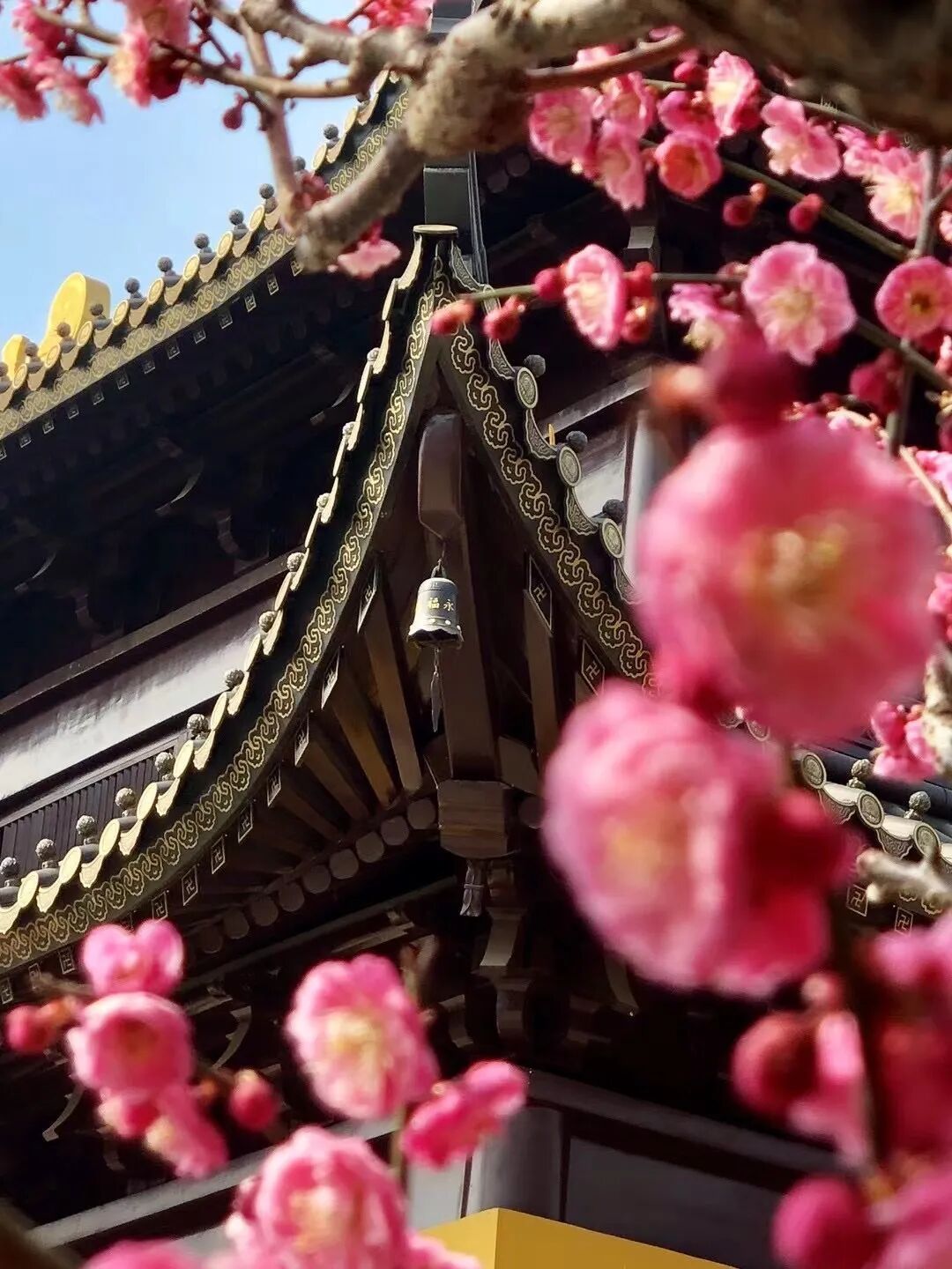 红梅衬古楼,拍摄于永福庵@睡着的水