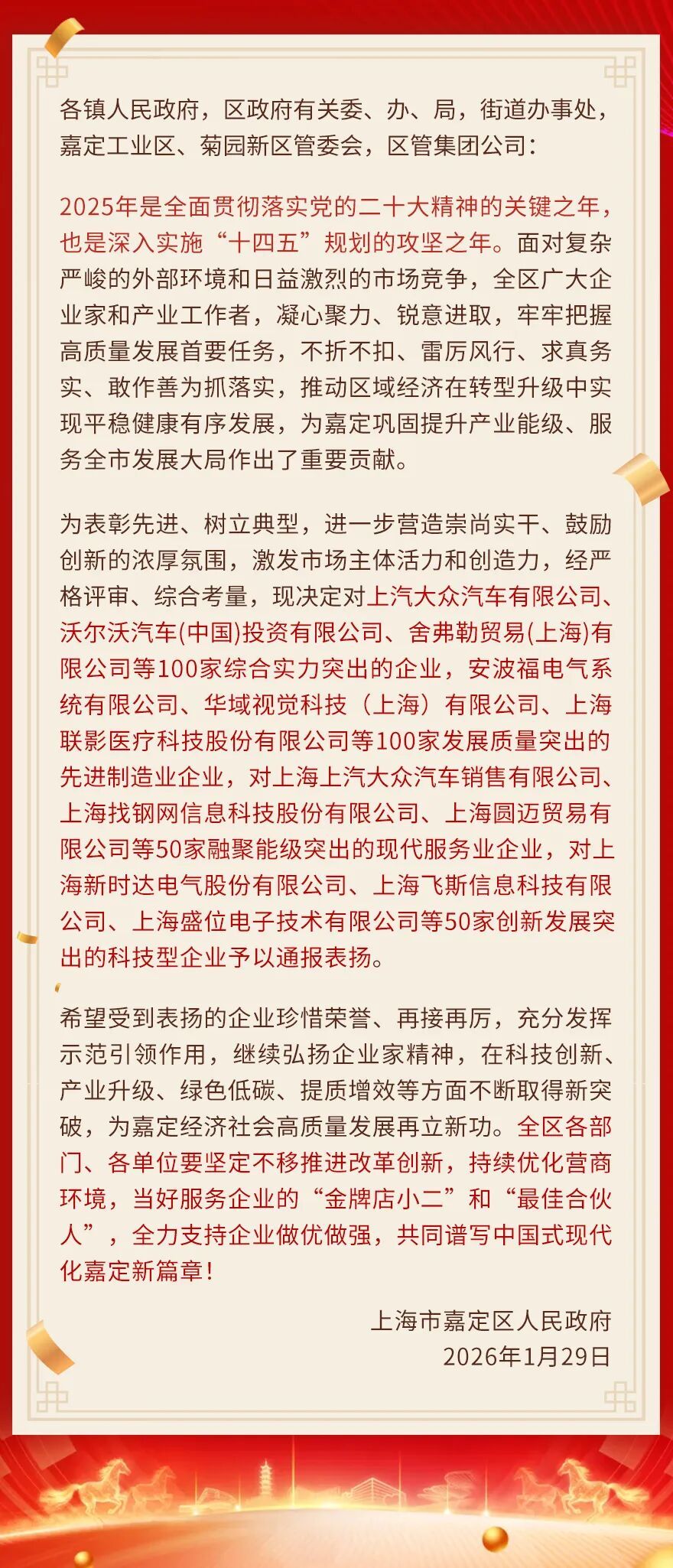 2025年,嘉定经济在转型升级中稳健前行,广大企业功不可没。为表彰先进、树立典型,区政府近日通报表扬了300家杰出企业,涵盖综合实力百强、先进制造业百强、现代服务业五十强及创新发展五十强。上汽大众、联影医疗、找钢网等一批知名企业名列其中。一起来看↓