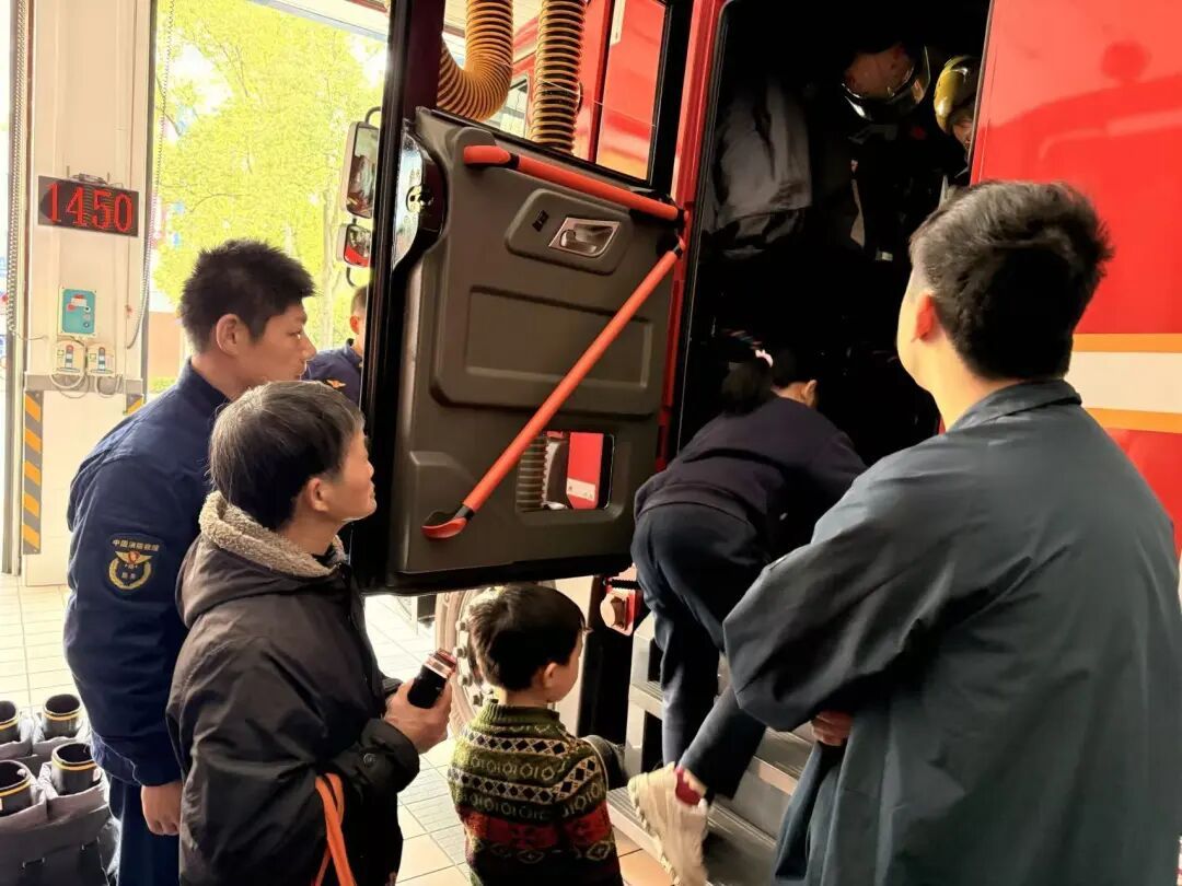 活动伊始,在消防员的热情引导下,小朋友们有序踏入消防站,瞬间被整齐列阵的消防车、种类繁多的消防装备吸引,眼神里满是好奇与向往。