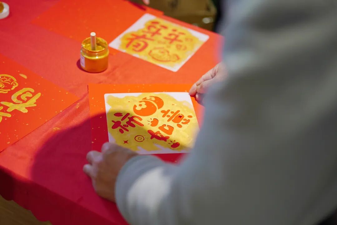 来自华润有巢公寓社区的张先生带着4岁的孩子正在拓印“福”字门贴,他表示:“恰逢周末,看到这里有很多民俗活动,就特意带孩子来体验。像拓印、剪纸这些传统手艺,孩子平时很少接触,今天能亲手做,对他来说既新鲜又有意义。”