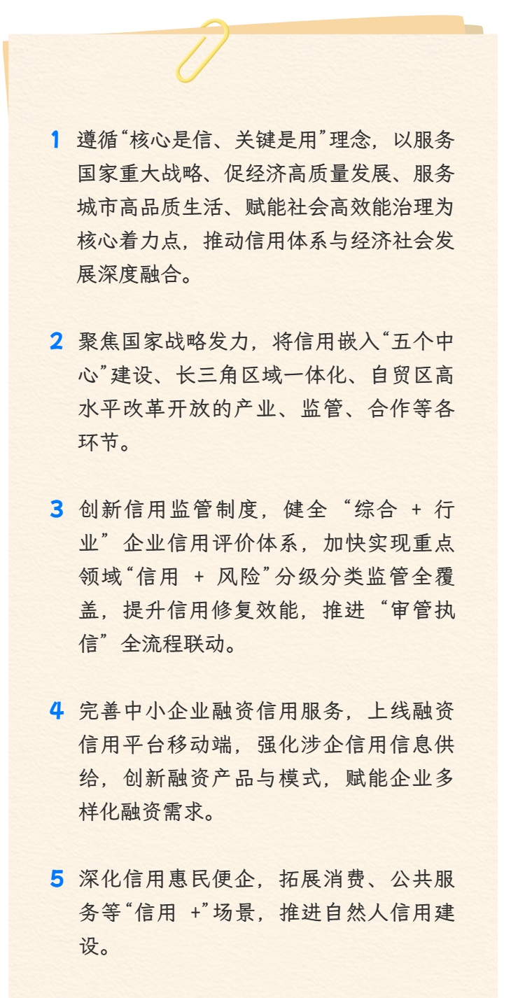 《2026年上海市社会信用体系建设工作要点》(点击“阅读原文”可查看原文)近日印发,提出六方面共18项工作任务,包括积极发挥信用功能服务“五个中心”建设、健全“综合+行业”信用评价体系、创新融资信用产品、完善信用修复机制等,一图读懂↓