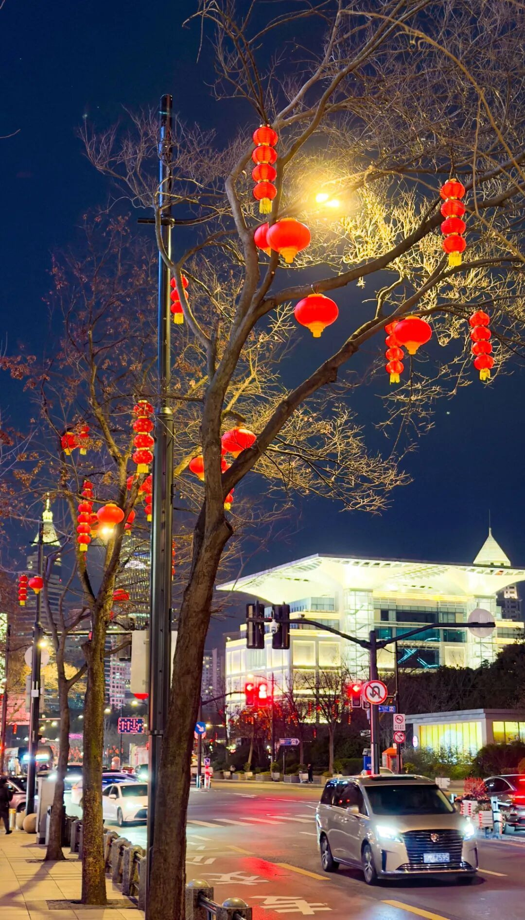 一串串红红的中国结悬在灯杆间,