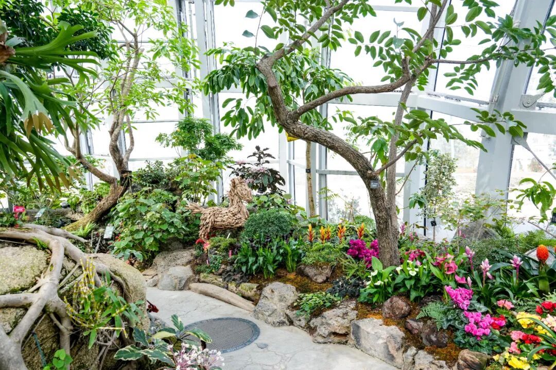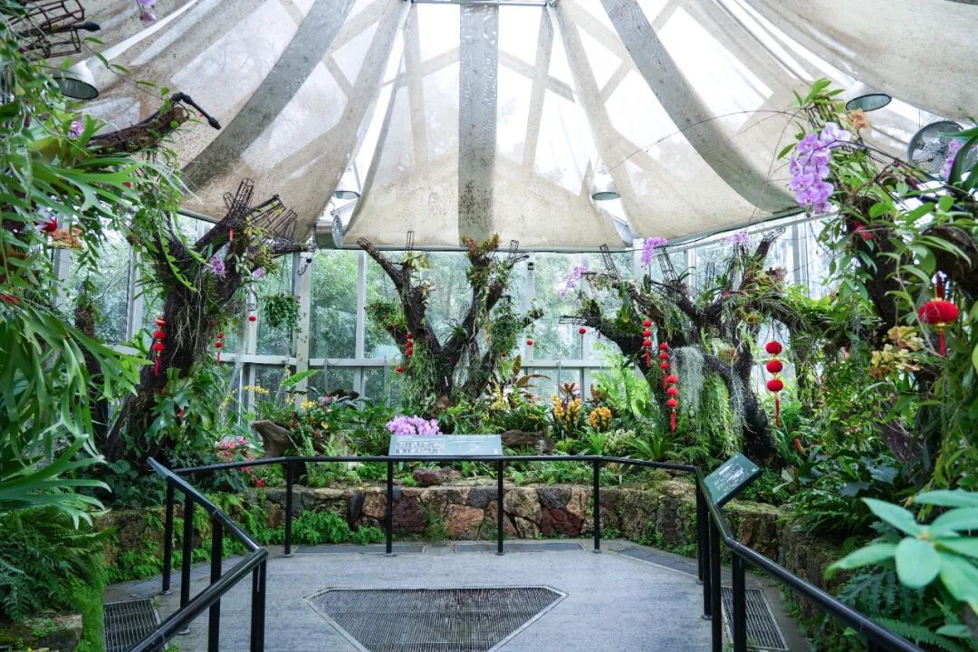 热带植物馆汇聚了各类寓意吉祥的年宵花卉,成为新春赏花的绝佳去处。这里以彩色马蹄莲为主体花卉,搭配大花蕙兰、蝴蝶兰、北美冬青、牡丹等热门年宵花品种,各色花卉竞相绽放、争奇斗艳,温暖的场馆环境与红火的花卉景致相得益彰,让步入其中的游客,都能直观感受到新春的吉祥与喜庆。
