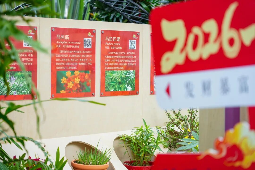 马蹄莲、马鞭草、马齿苋、马拉巴栗……四季花卉温室摇身一变,成为充满趣味的“马年植物科普乐园”,为花展注入了浓厚的科普氛围。展馆内集中展示了十余种带“马”字的植物,配套设置的科普展板,详细介绍了这些植物的生长习性、实用价值以及名称的由来。科普展示还延伸至整个园区,四座温室及园区各个角落都藏有“马”字植物,且均统一悬挂了标识标牌,同步推出的“寻马藏花”活动,让游客在赏花之余,还能体验寻踪探秘的乐趣。