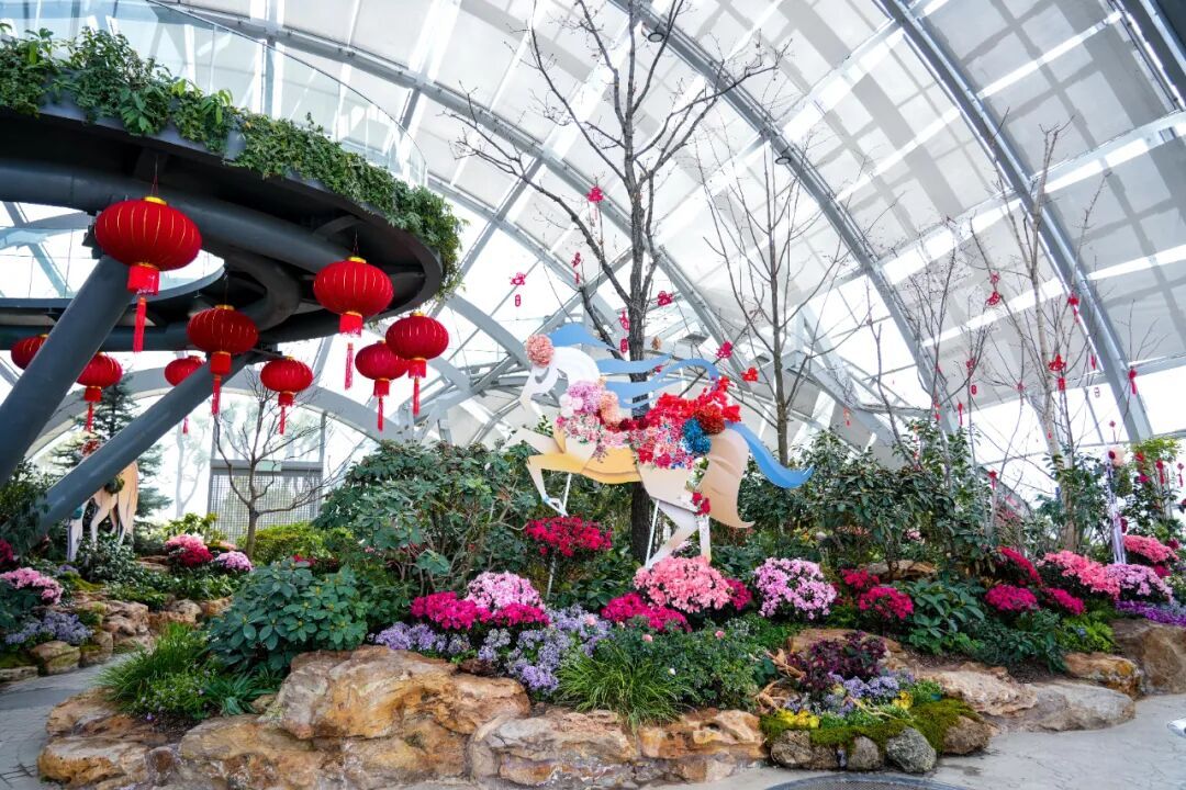 随着农历马年的脚步愈发临近,申城的新春暖意也日渐浓郁。近日,2026上海植物园年宵花展在园内四座展览温室同步开展。本次花展以“驰岁焕新,繁花贺春”为核心主题,巧妙串联八匹骏马元素,让四座风格迥异的温室各自绽放光彩,共同绘就一幅花马共舞的新春画卷。