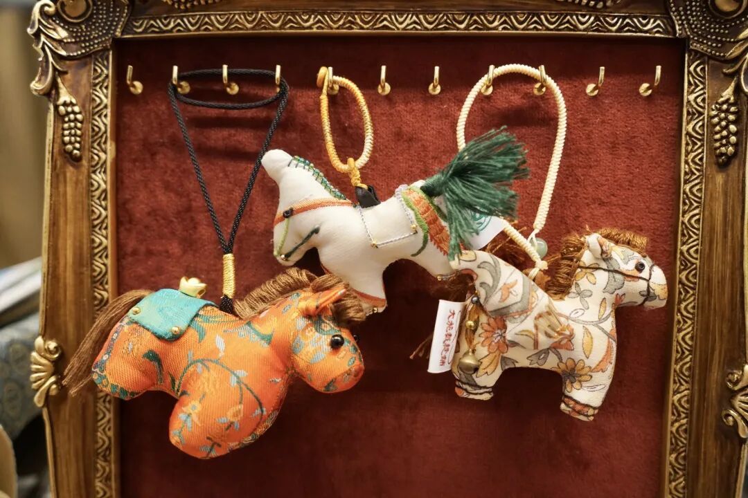 小马挂件,敦煌飞马、马鞍上托着金元宝的小唐马这几款也是店铺内销量很高的产品。主理人为了迎接马年年,便让裁缝阿姨把各种面料尝试着做小马包挂,结果没想到反响特别好。有的姑娘走进店内看到小马甚至一口气买了六七个,“因为每个都不一样,都太好看了。一周七天还可以根据心情来配服饰妆容。”