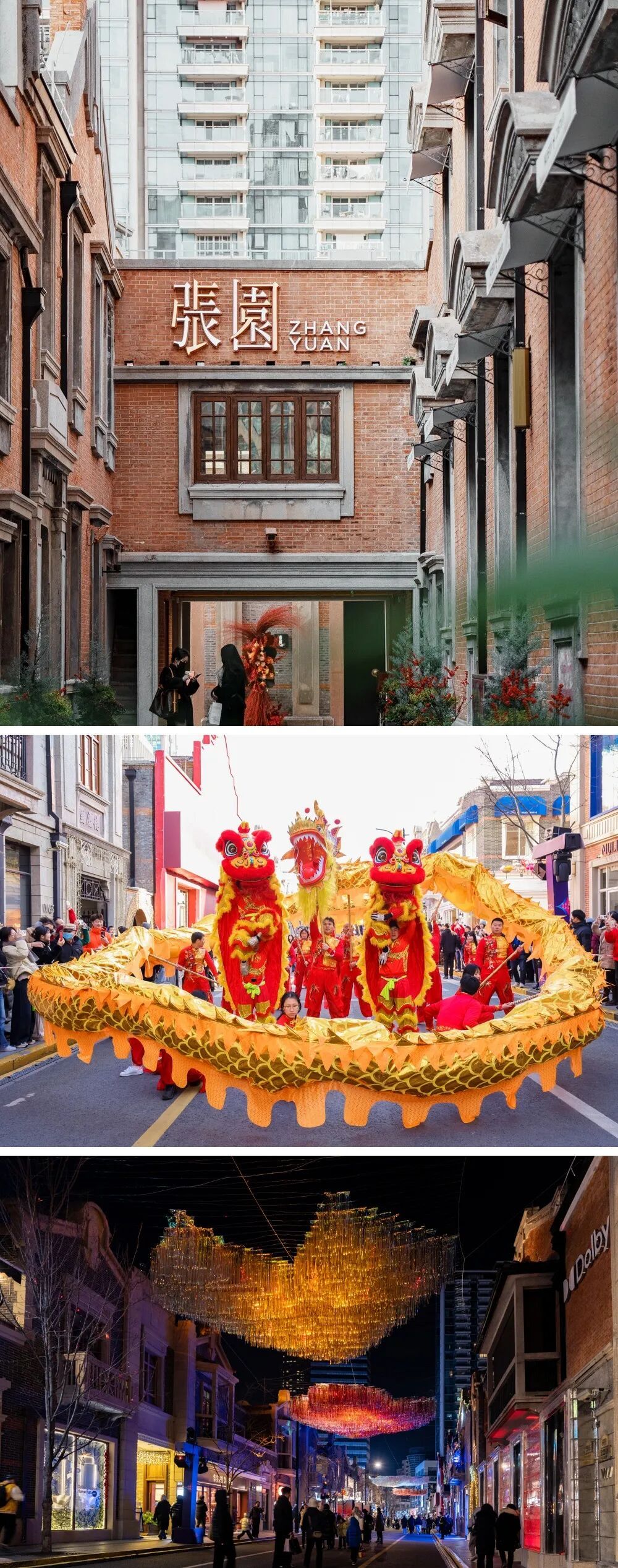 南京西路标志性打卡地,巨型艺术装置成为新春潮流视觉焦点。 百年石库门建筑群改造的艺术地标,复古与摩登交融。 “闪亮·静安 光影SHOW新春”活动:2月15日至23日举办,17:30至21:30亮灯,含徐悲鸿奔马光影IP、非遗元素灯光秀; 张园新春海派游园会:乐高IP展、舞龙舞狮、马戏沪剧表演。(活动以实际情况为准)