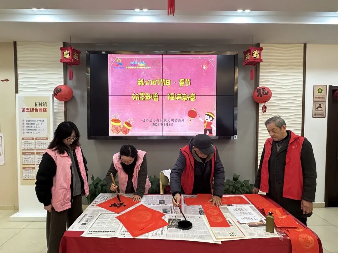相较于临街售卖点的热闹便捷,村居内的手写春联活动则多了一份墨香温情与邻里暖意。为传承中华优秀传统文化,柘林镇各村居(队)纷纷开展手写春联、剪窗花送祝福活动,邀请书法爱好者、退休老教师化身志愿者,现场挥毫泼墨,巧手翻飞,把最真挚的新春祝福凝于笔尖和指尖,赠予辖区群众。