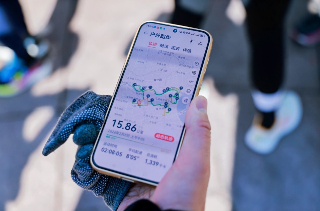 农历马年春节的脚步愈发临近,黄浦区处处洋溢着浓浓的节日氛围。2月8日,尽管当日气温低至零下2度,凛冽寒意侵袭着街道,但阳光已温柔地洒下,给这座城市带来丝丝暖意。以苗江路跑团为核心的数十名跑者不惧严寒,齐聚上海国际饭店前的五卅广场,根据前不久发布的“环球美食跑”线路图,以城市街道为画布,借助GPS轨迹在地图上“跑”出一匹昂首奔腾的骏马,用这种独特而充满创意的方式迎接农历马年的到来。