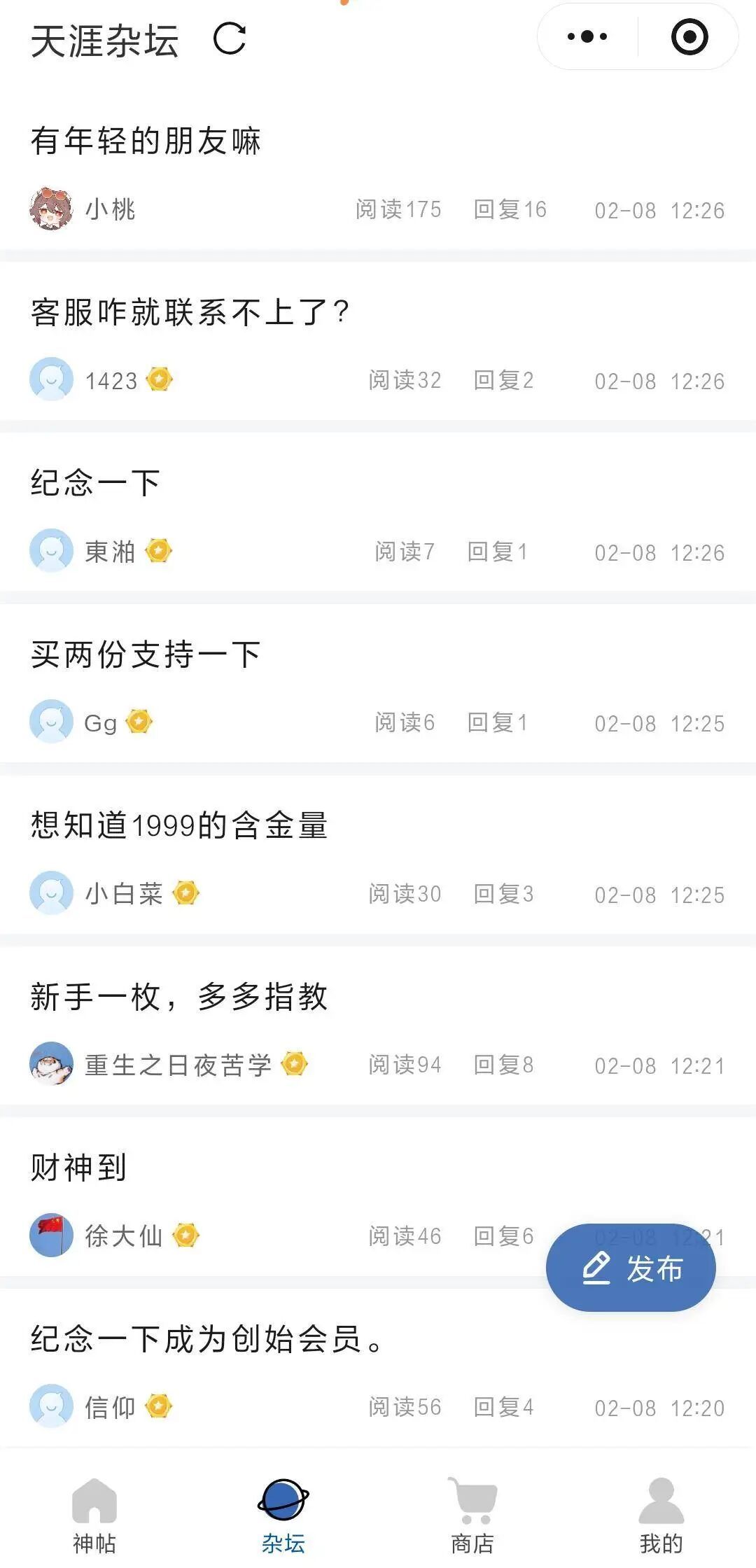 该小程序主要包含神贴、杂坛、商店三个版块,进入神贴版块仿佛走进了时光机,官方重新整理了曾经天涯社区中的热门帖,不仅保留了原帖文,对过去的评论回复也进行了搬运,目前更新的帖子数量还不算很多,要完整浏览帖文需要开通会员。