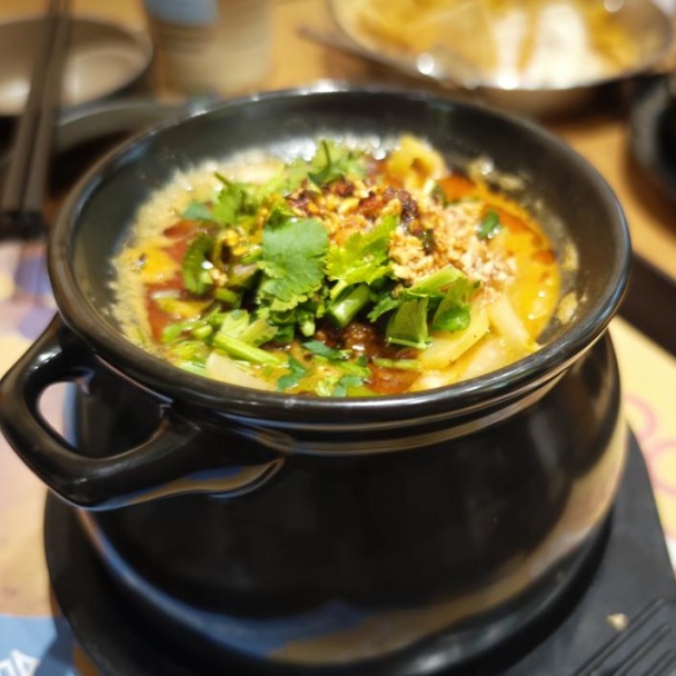 冬日暖身首选,当属这碗砂锅麻酱土豆粉!冒着热气的砂锅端上桌,香气扑鼻而来。手工现做的土豆粉爽滑Q弹,每一根都均匀裹上咸香醇厚的秘制麻酱,入口入味绵长,满满幸福感。