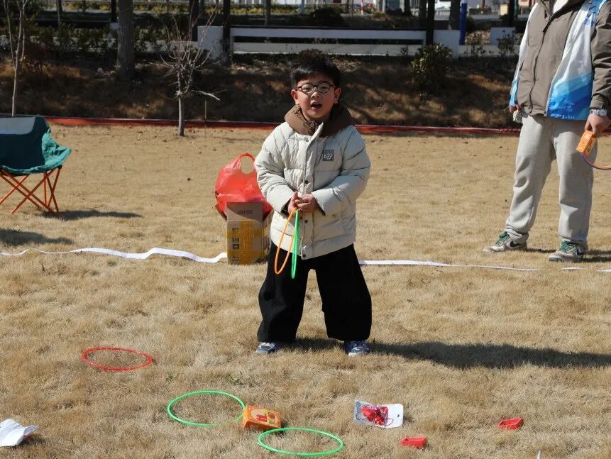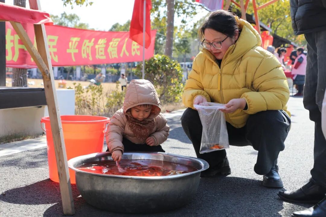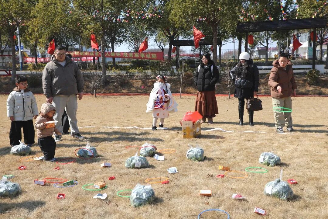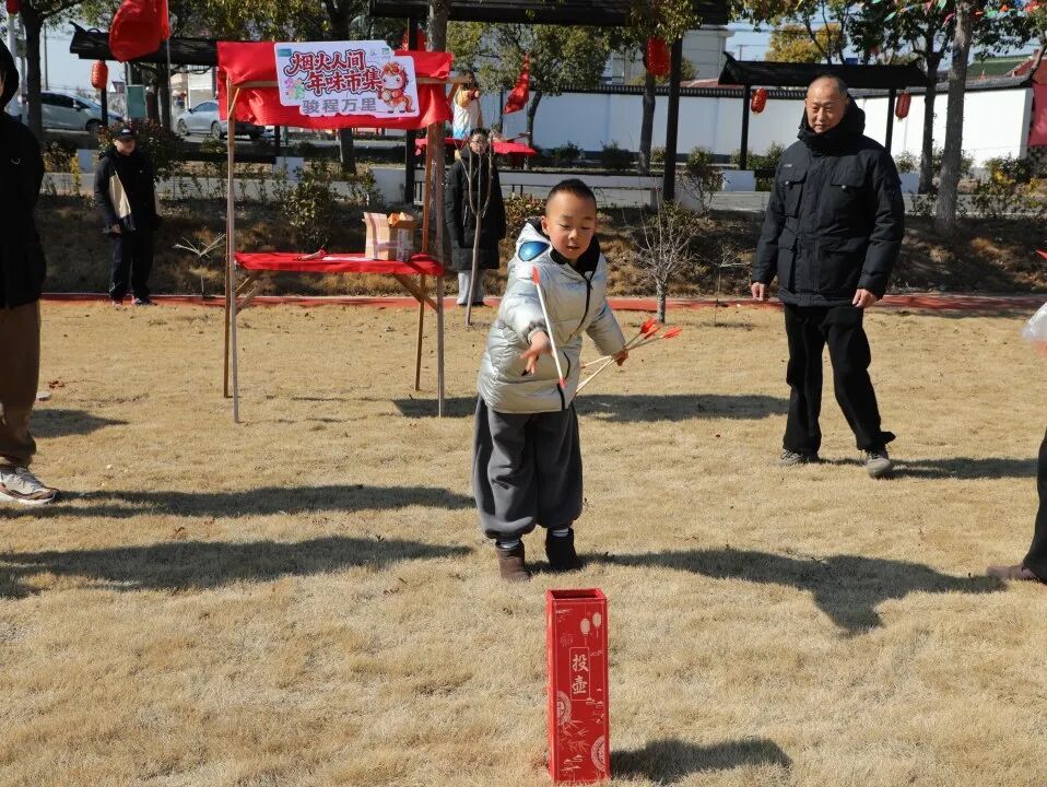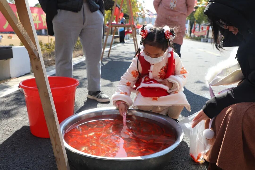 活动在热闹的新春集市中拉开序幕。拓福、套圈、投壶、捞金鱼、爆米花……