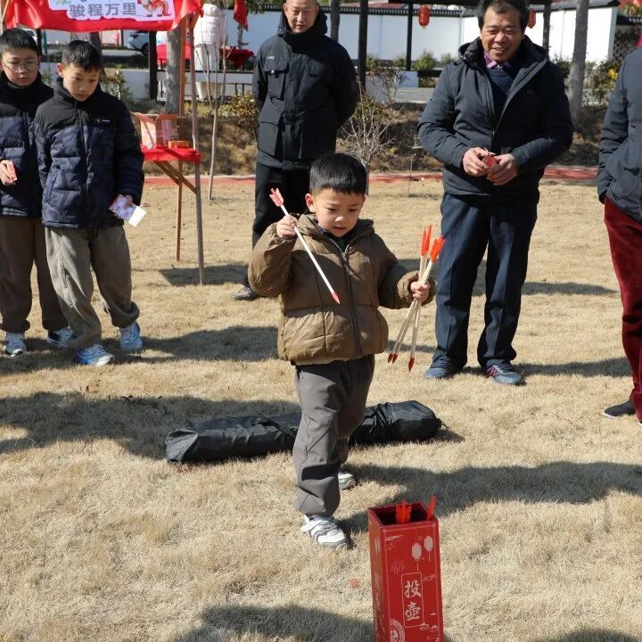 一个个充满童年记忆的传统游戏与民俗体验摊位前围满了大小朋友。大家亲手拓出新春祝福、尝试投壶中彩。