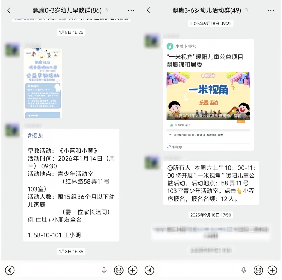 联合辖区幼儿园将亲子课堂搬进楼组,每周固定开展亲子游戏与育儿指导,为80多户0—3岁幼儿家庭提供家门口的专业服务,还培育出家长志愿者队伍,让服务扎根社区。