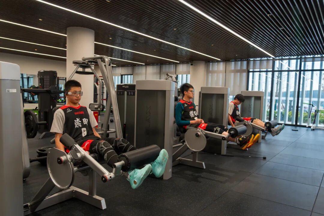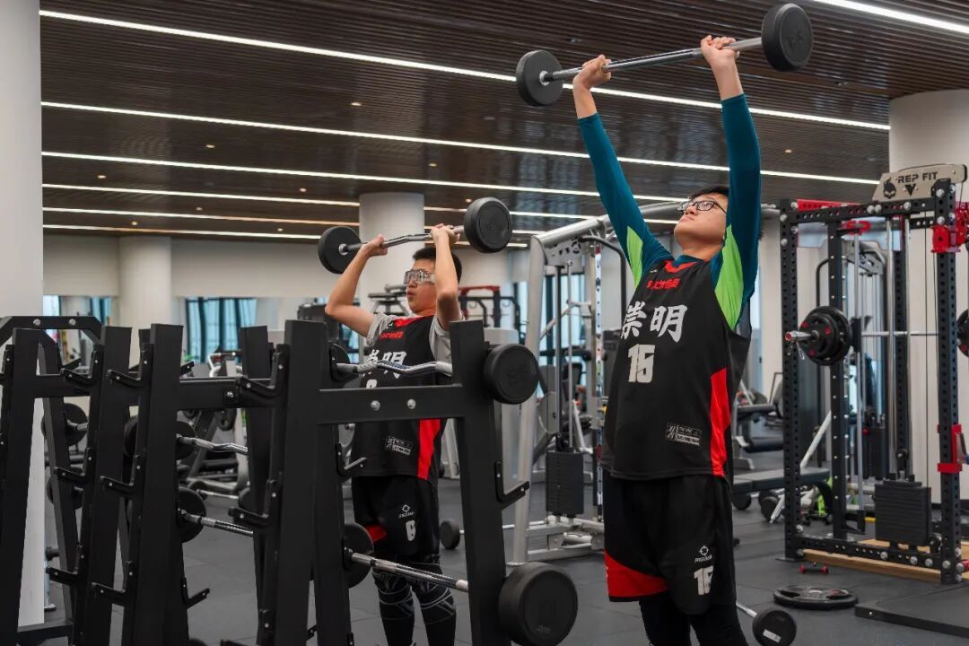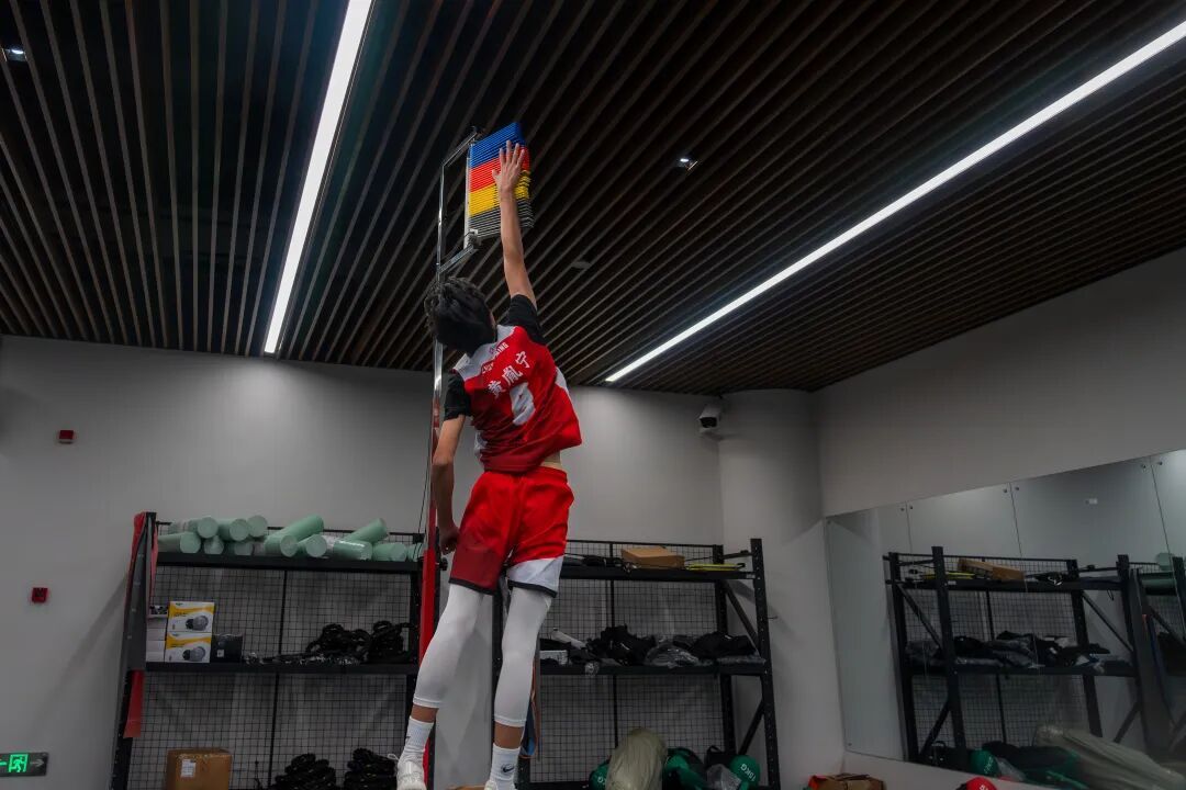 本次集训充分利用寒假窗口期,制定了科学系统的训练计划。每天超过6小时的训练涵盖体能储备、个人技术、小组攻防及全队战术配合等多个维度。在健身房内,力量区的杠铃起落声与弹跳区的助跑起跳声交织,为赛场对抗储备着必要的身体素质。乙组球员黄胤宁格外专注,他后退几步,深呼吸,目光锁定摸高器顶端的刻度,突然启动加速——三步助跑后全力起跳,右手奋力伸向最高点,在触摸到标尺的瞬间,身体在空中形成一道完美的弧线。落地后,他立刻抬头确认触碰的高度,眼中闪烁着挑战自我的光芒。