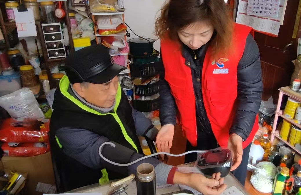 在另一户老党员张贤林家中,党员袁晶晶正细心为老人测量血压,“张老师,血压保持得不错,天冷更要注意。”张贤林感慨道:“你们常来走走,我心里踏实,身体也觉得硬朗。”