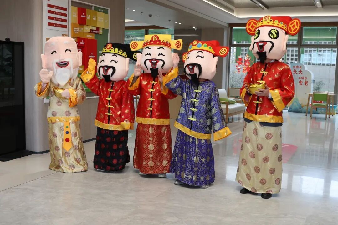 养护院大门处,工作人员扮演的福禄寿禧财五福人偶作揖迎接着大家。长者们围坐在一起说笑,有些老人的子女也赶来陪老人一起吃团圆饭。米阿姨告诉记者:“我爸爸已经98岁了,在养老院里住了1年多,我们很放心,平时会多来陪陪他。”龙华街道相关负责人不仅为百岁老人、特殊困难老人等送上鲜花和新年慰问品,还为在场的长者们送上新春大礼包。