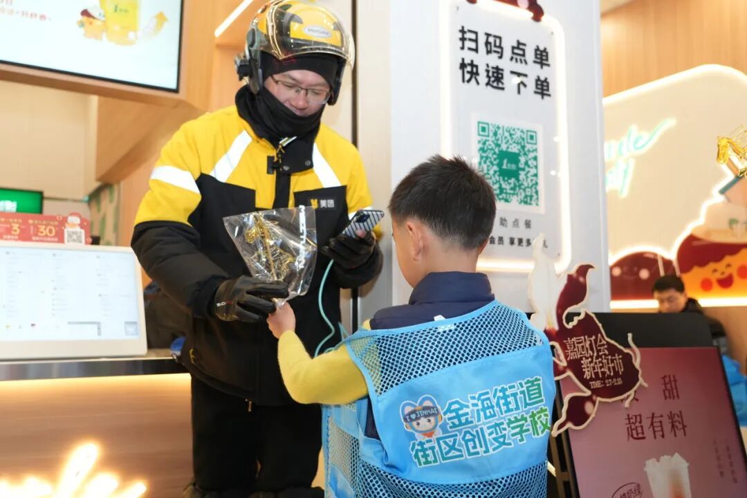 与此同时,一场以“糖画传情,甜暖骑手”为主题的暖心行动也悄然展开。街区创变学校的小朋友们,将带着新春祝福的精美糖画,送到平日里穿梭街巷、奔波忙碌的外卖小哥手中,用一份甜蜜暖意致敬城市里的坚守者。