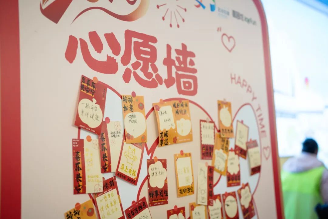 主题心愿墙前,居民们纷纷拿起笔,写下对家人的牵挂、对事业的憧憬,或是对马年的美好期许。