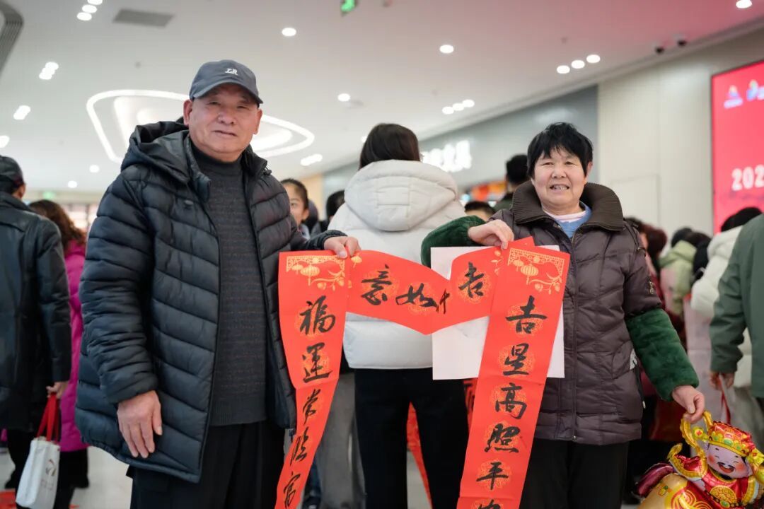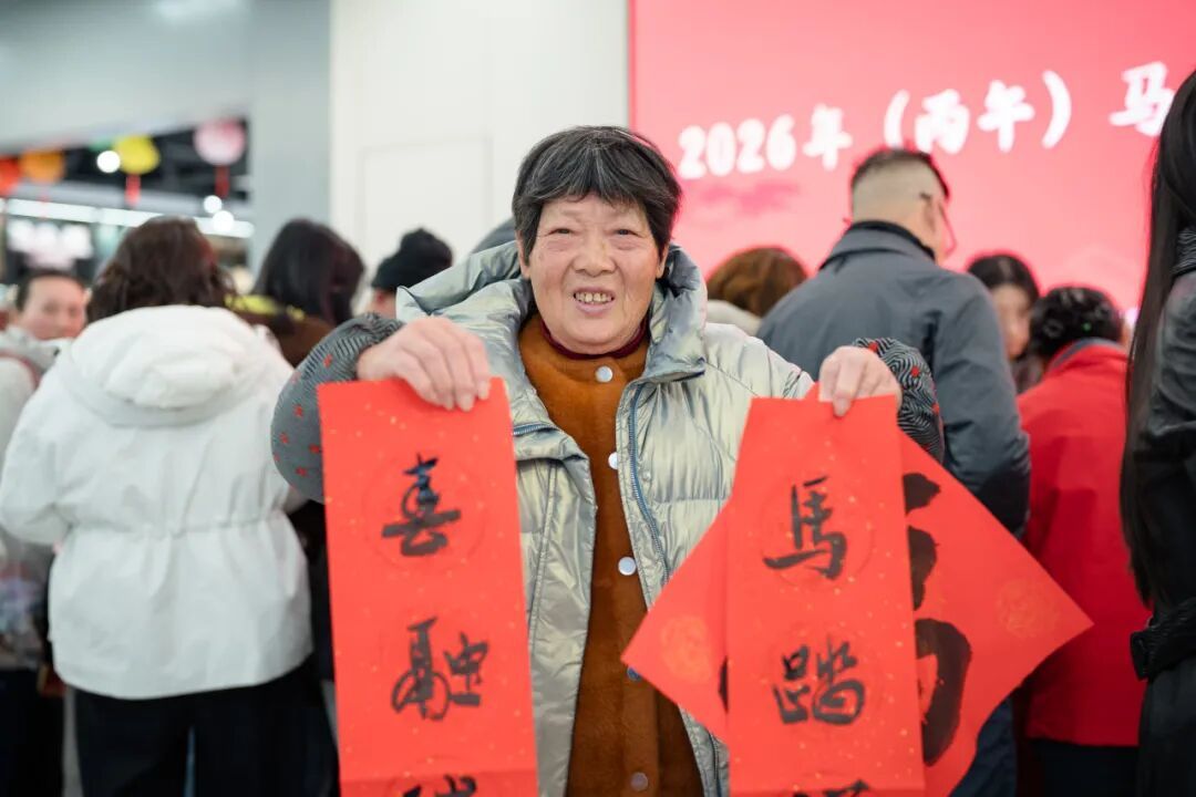 200份限量国潮春联与福字模版供居民自由选择,传统笔墨与潮流设计的碰撞,让每一份作品都成为独一无二的新春祝福。居民们手捧墨香四溢的“文化年货”,脸上洋溢着幸福的笑容。