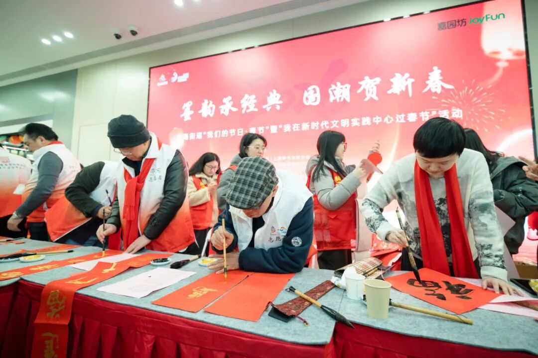 2月7日下午,嘉园坊1号楼室内暖意融融、墨香四溢,由金海街道携手上海市书法家协会联合主办的“墨韵承经典·国潮贺新春”——“我们的节日·春节”暨“我在新时代文明实践中心过春节”活动圆满落幕。此次活动落地金海街道2025年年末全新开业的嘉园坊商场,不仅打造出兼具文化深度与暖心温度的新春盛宴,更让家门口的浓浓年味与商圈蓬勃活力双向奔赴。