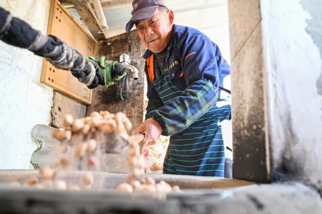 等待的空档,村民们已然聊得热火朝天,时不时从锅中取出几颗花生尝尝味道。“看这颜色,还差几分火候。”只见村民杨元英手指轻轻一拧,花生皮便自然脱落,露出了里面的花生仁。