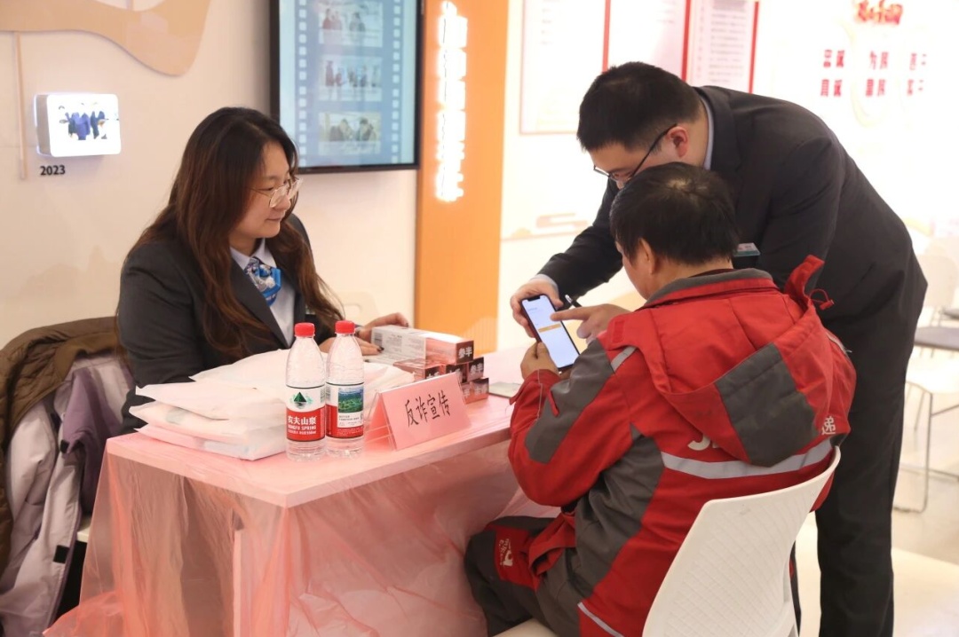 此外,活动还设置了公益咨询服务点,同心公益服务中心负责人朱杰为大家提供免费心理健康咨询,中国农业银行上海江宁支行工作人员耐心讲解金融反诈知识,从身心与财产安全等多维度,为劳动者们送上贴心的新年关怀。