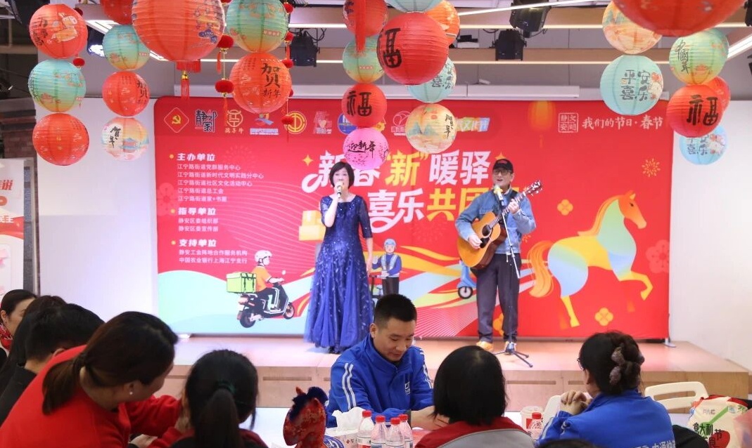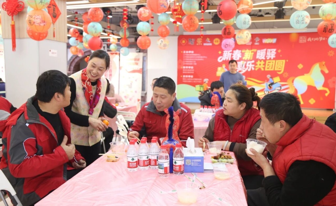 百余名外卖骑手、快递小哥等新就业形态劳动者代表欢聚一堂,共赴团圆家宴、体验传统年俗、观赏文艺展演、领取暖心礼包,在奔波忙碌的间隙,卸下疲惫,感受浓浓的节庆氛围与“家”的温情守护。街道相关部门负责人、区人大代表以及共建单位中国农业银行上海江宁支行负责人为行业代表送上定制“暖‘新’礼包”。