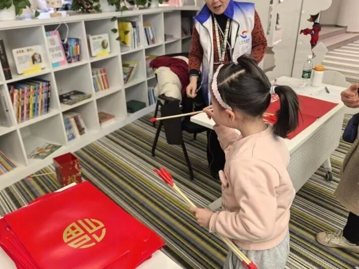 值得一提的是,从宋锦书法相框画体验到刺绣添喜手套制作,从投壶雅趣到新春猜谜,以及互动打卡拍照等环节,都离不开家庭志愿者们的全程守护与贴心服务。活动中,不同年龄的志愿者们各展所长,为游园会增添了别样的温暖底色。