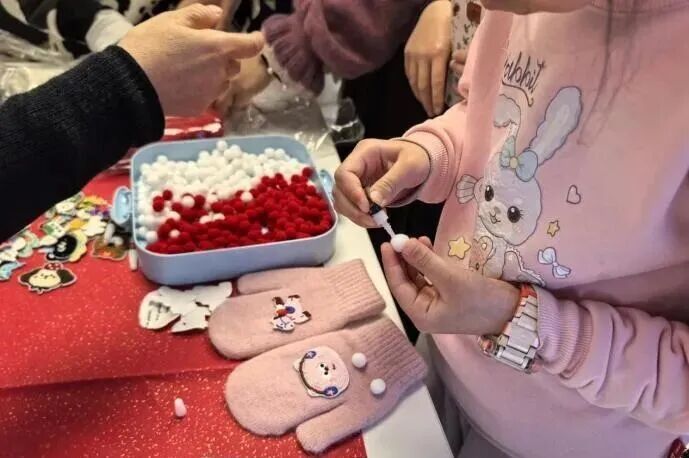 在“新春‘手’护·刺绣添喜”展位,亲子家庭共同完成一副温暖的手套。一针一线绣出图案,传递的是“亲手为所爱之人添暖”的深情,在细微处体悟关怀与守护的家风真义。