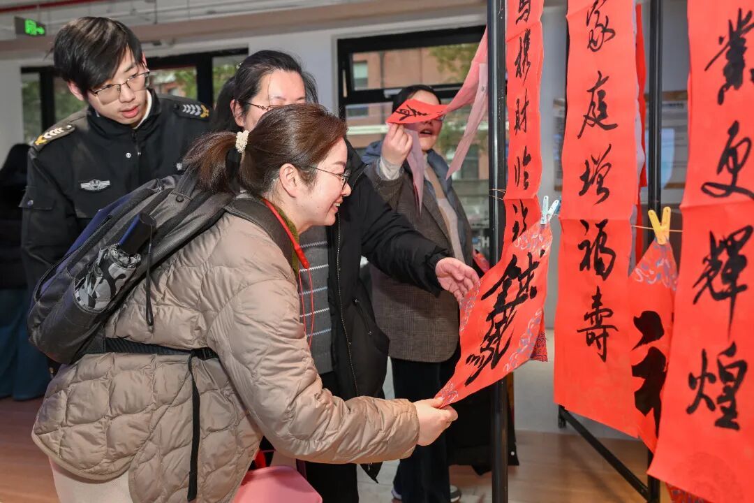当天还举行了园区新春游园会。街道党群服务中心携手音乐谷党支部,为居民们准备了写福字、写春联、低碳套圈、糖葫芦制作、传统剪纸等丰富多彩的体验活动,让园区白领们与周边街坊邻里暖心相聚。