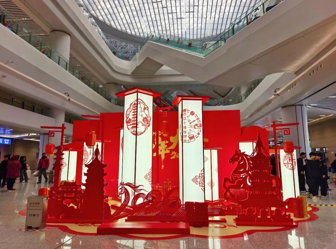 2月8日下午,记者在上海松江站看到,往来旅客步履匆匆,满载归家期盼。商业区大厅内,融合传统年俗、松江文化地标的主题场景古韵盎然、年味十足,吸引不少出站、候车旅客驻足打卡、拍照留念。现场还设置了“南来北往幸福年”特展、新时代文明实践扶持项目及先进典型事迹展陈,在展现春节非遗文化的同时,让文明新风浸润人心。