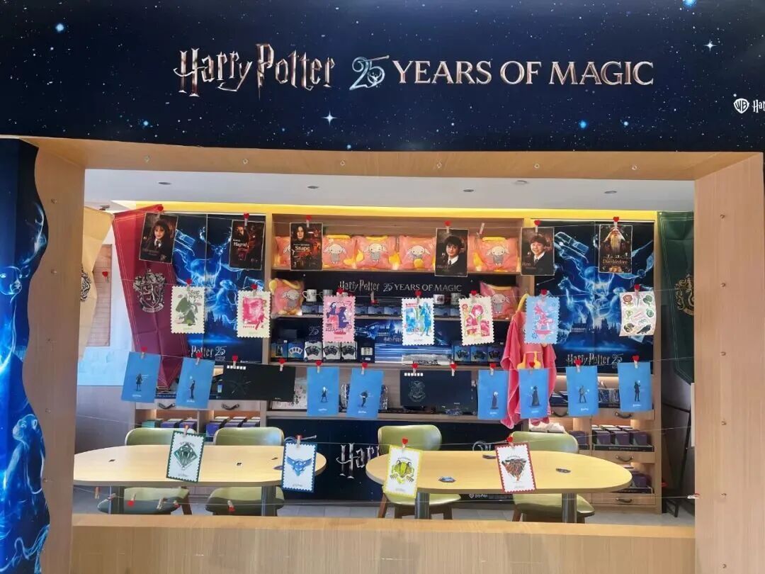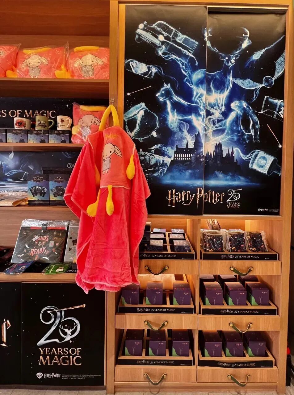 走进邮局,仿若瞬间穿越至霍格沃茨。现场陈列了近60款正版衍生品,从电影全集胶片明信片盲盒,到学院刺绣书签、可旋转的“呼神护卫”金属冰箱贴,覆盖收藏、日用与装饰等多种需求。