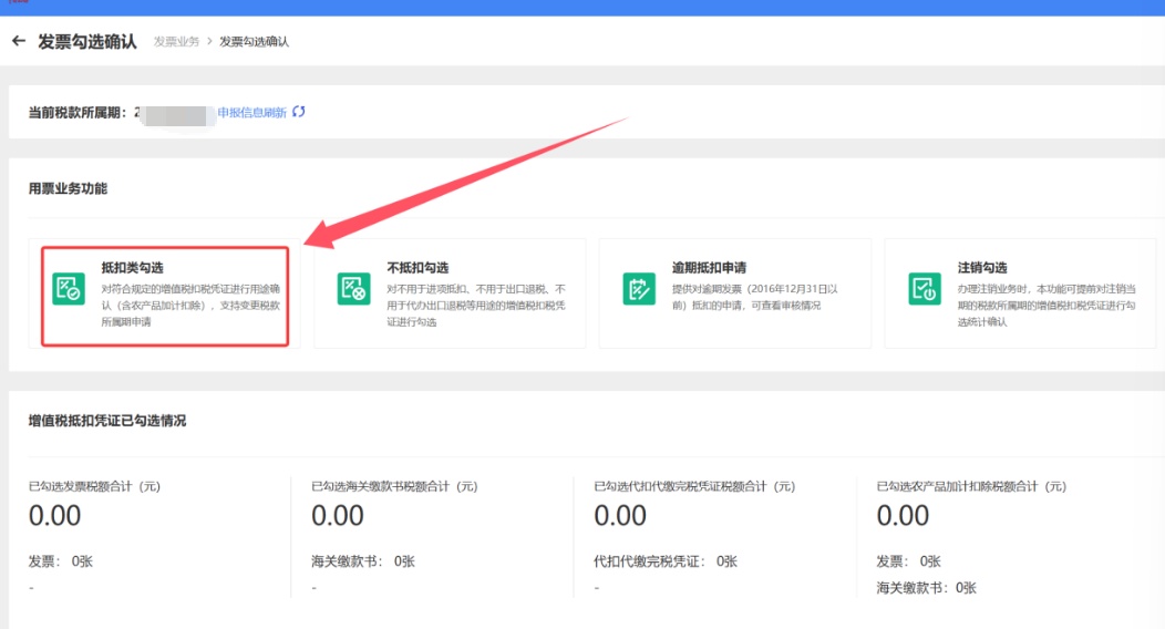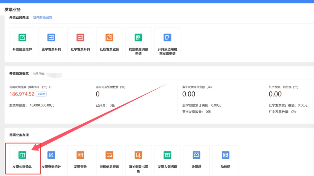 登录电子税务局,点击【我要办税】,依次选择【税务数字账户】-【发票业务】-【发票勾选确认】-【抵扣类勾选】。