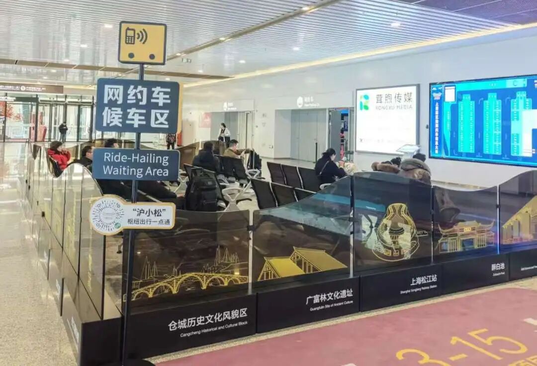 网约车候车区的座椅也悄然升级,材质从铝合金改为软塑料,围栏上点缀着松江地标图案,让短暂等候也如一场微型的城市观光。