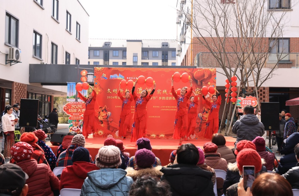 下午一点,活动在城桥镇青演舞蹈队热情洋溢的《灯笼舞》中拉开序幕,舞者们手持红灯笼,步伐轻盈,瞬间点燃了全场喜庆的气氛。随后,韵味醇厚的沪剧选段、妙语连珠的相声《马年说马》、深情动人的独唱接连上演。由社区居民自编自演的小品《好人好报》,用幽默朴实的方式讲述身边故事,引发了观众的强烈共鸣。压轴登场的舞蹈《灯火里的中国》,舞姿优美,气势恢宏,将现场气氛推向高潮。