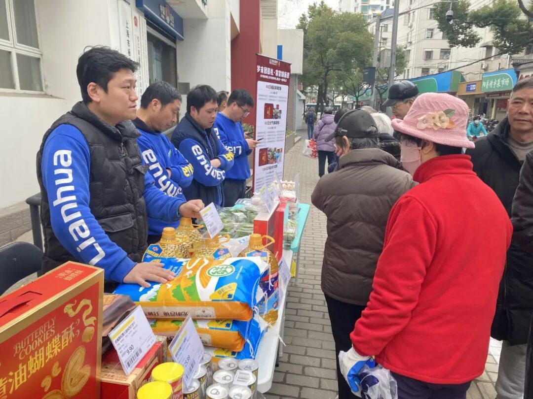 年货节当天,睦邻中心变身热闹市集。年货区货品琳琅满目,世纪联华的工作人员热情介绍着商品,并贴心地提供送货上门服务;一旁居民手作的宋锦工艺品精美别致,吸引不少人驻足。便民服务区始终人气十足:老师傅娴熟地打磨着刀具,刀刃在阳光下闪着光;医护志愿者边测量血压边轻声叮嘱注意事项;中医问诊台前,医师正耐心解答健康疑问。