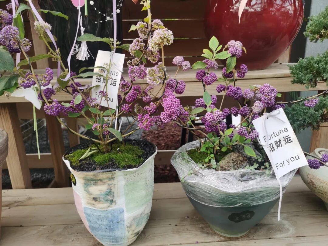 观花如大花蕙兰、杜鹃、石斛兰、仙客来、长寿花、三色堇、报春、八仙花、大丽花、文心兰、铁筷子等;观果如佛手、金桔、柿子、老鸦柿、紫珠、金豆、北美冬青、柠檬、蓝莓、红萝卜、小青柠等;