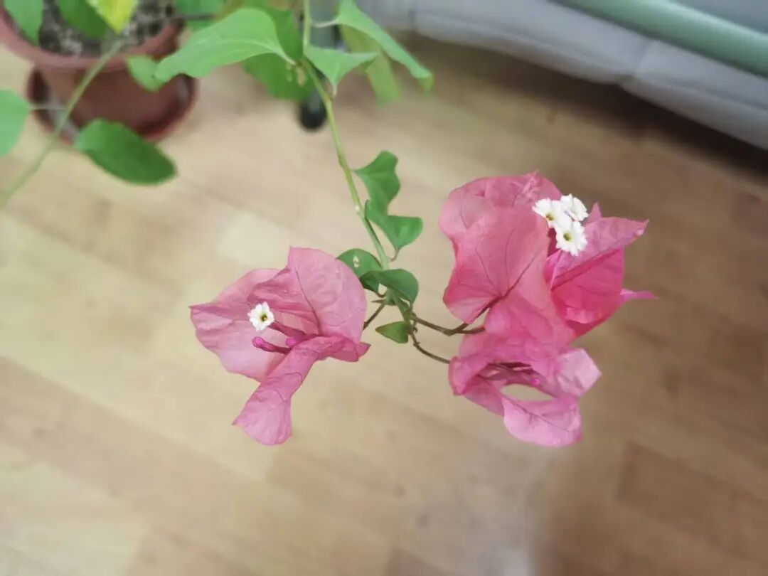 同样开花繁茂的三角梅,在冬季的上海,也需室内养护,并保持充足散射光。