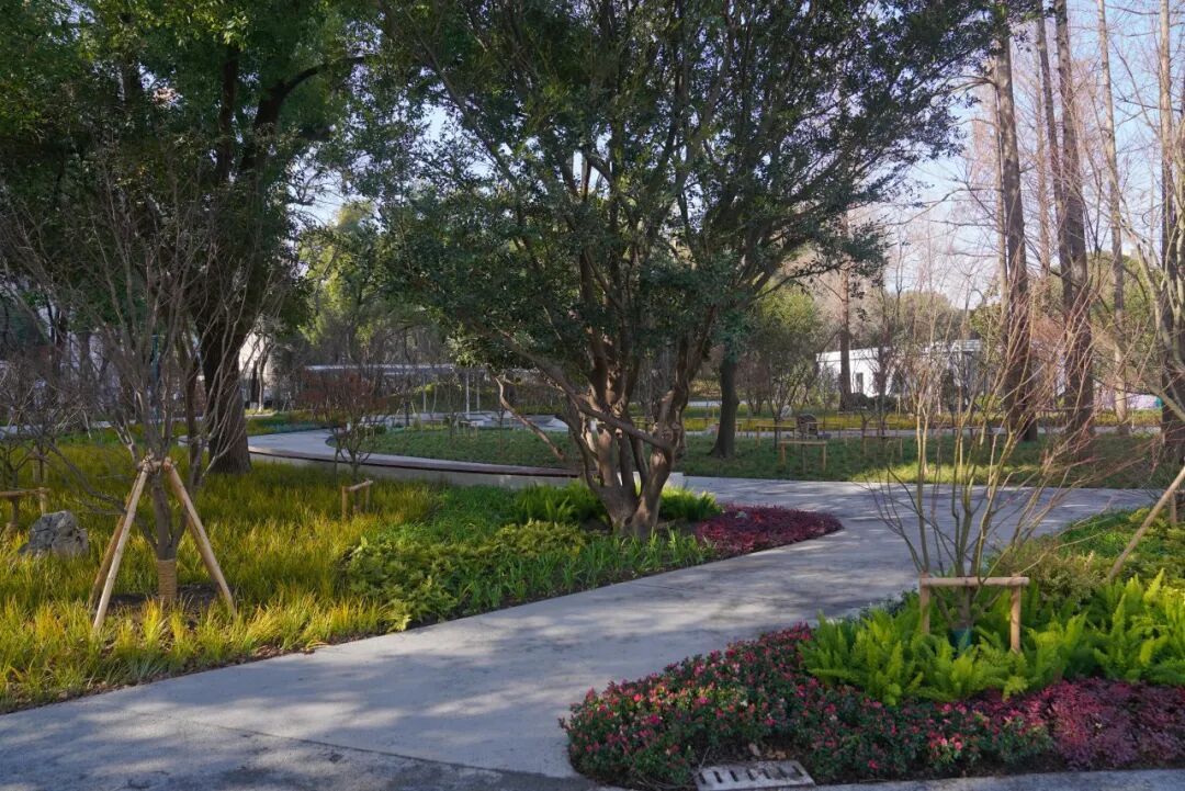 公园还注重全龄友好与记忆传承,将静馨苑升级为自然感知花园,保留原有樱花林、改造提升红枫园、优化蜡梅梅花冬枝园,形成完整的四季景观体验。