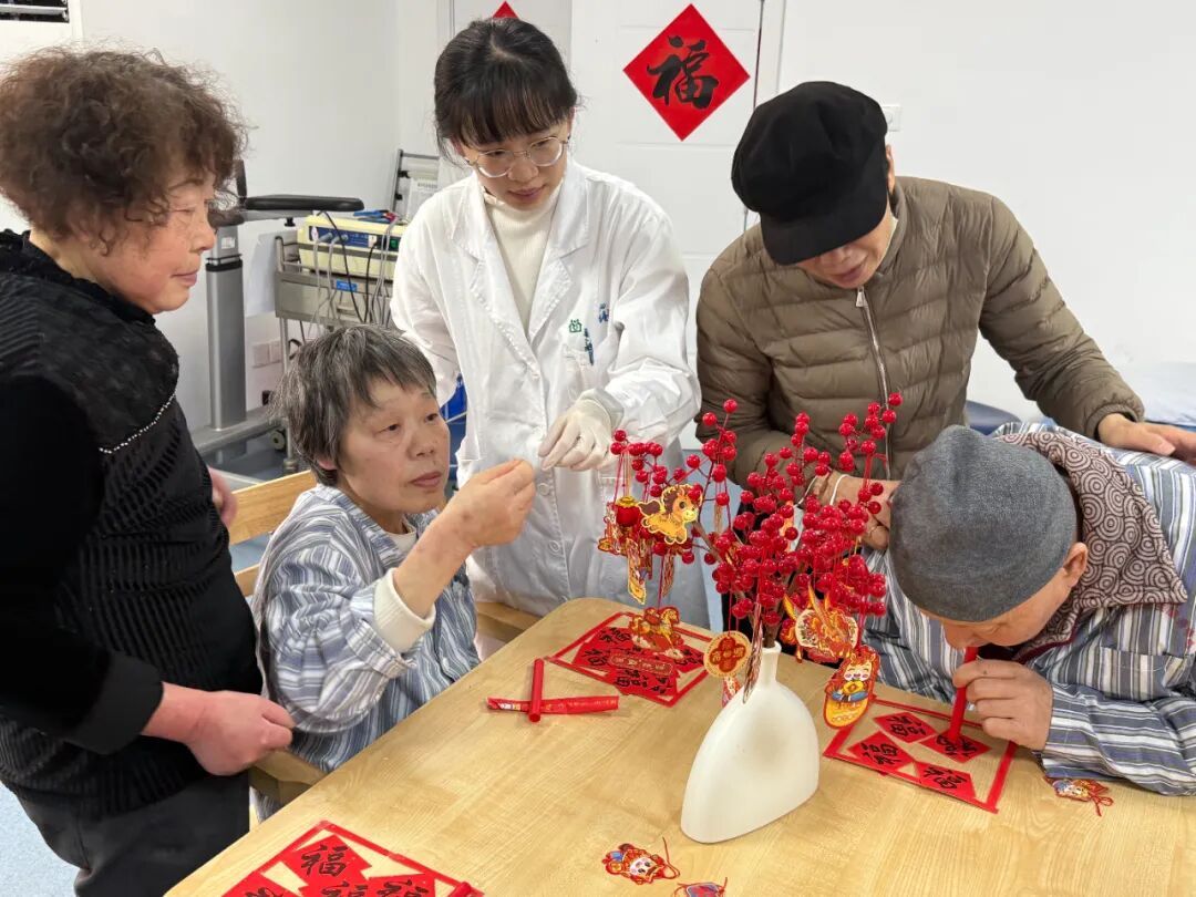 “阿姨,我们这样慢慢捏,花瓣就更饱满了。”“爷爷,福字要这样拿,咱们一起把福气吸得满满的!”活动中,护士们化身温柔的艺术导师。这细致的考量源于专业;这亲切的互动,则根植于一份超越职责的关爱。它呼应着“医起温暖一座城”的号召——这里的“医起”,是医护与患者携手同心,也是在整个区域医疗健康体系的支持下,让专业技术始终洋溢着人性的温度。