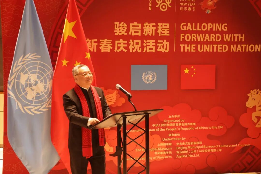 纽约当地时间2月9日晚,有着浓浓博物馆韵味的海派马年活动亮相由中国常驻联合国代表团在纽约联合国总部举办的“骏启新程:新春庆祝活动”。中国常驻联合国代表傅聪大使、副代表孙磊大使同阿明娜等13位联合国副秘书长、120多国常驻联合国代表及美东各界友人逾500人在联合国总部欢聚一堂,共庆马年新春。