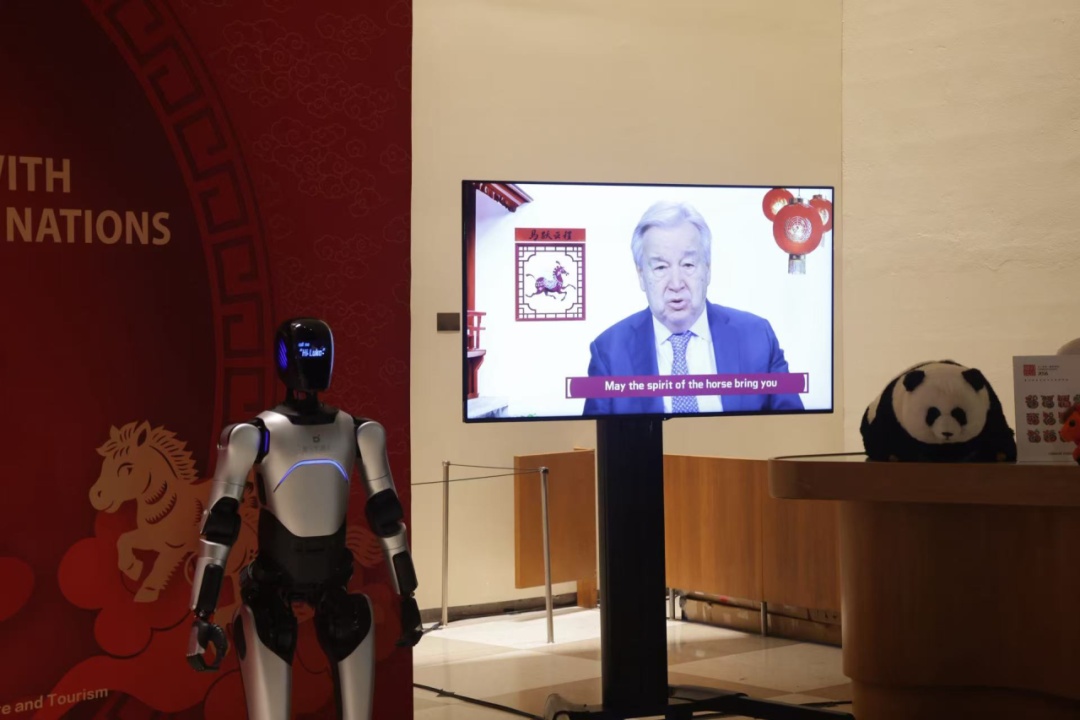 中国常驻联合国代表傅聪大使出席向全国人民拜年并表示,中国愿同各国一道,以一马当先的锐气、万马奔腾的团结、马到成功的决心,坚定支持联合国事业,携手应对全球性挑战,共建人类命运共同体。傅聪大使还在致辞中特别感谢上海博物馆将具有浓厚中国春节传统的文化体验活动带给联合国嘉宾。联合国秘书长古特雷斯通过视频向中国人民致以新春问候。