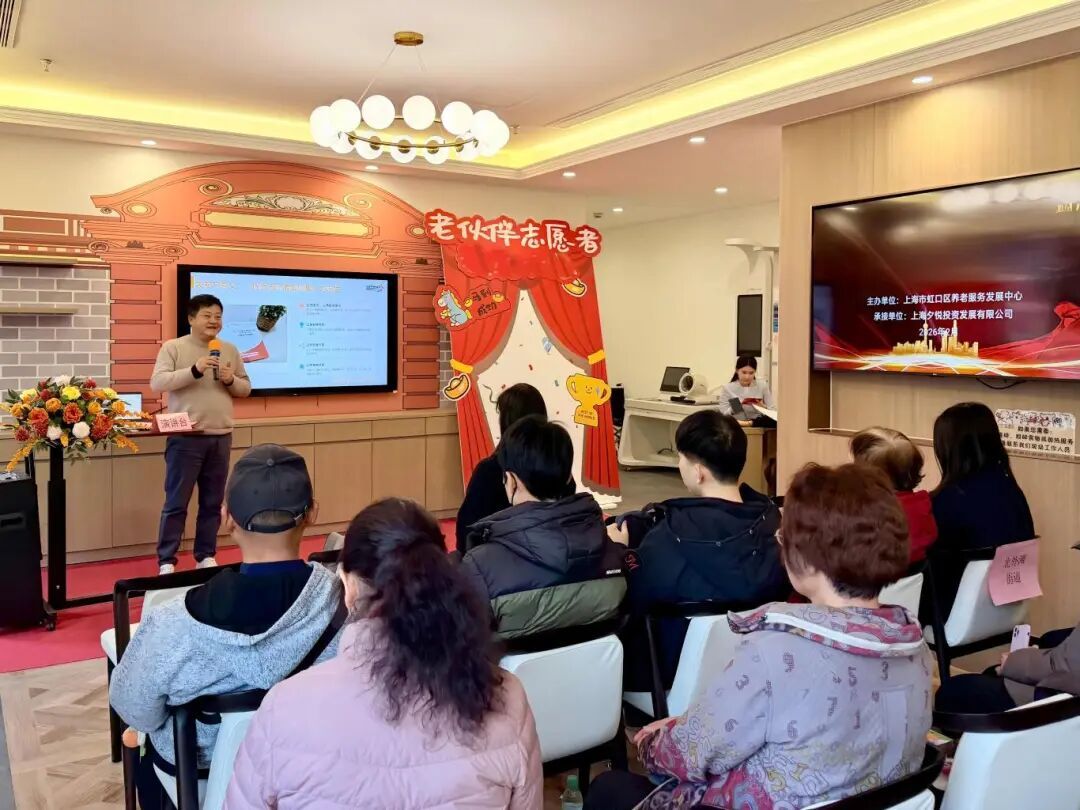 志愿者代表交流分享服务心得。没有豪言壮语,唯有“多看一眼、多问一句、多帮一把”的朴实坚守,汇集成《虹口区“老伙伴”计划志愿者优秀案例》,让志愿精神愈发鲜活可感。没有惊天壮举,唯有日复一日的真诚守护,这便是“老伙伴”志愿者们的日常模样。他们是应急时刻的“守护者”,台风天逐户排查隐患,老人突发疾病时火速帮扶;是生活里的“暖心人”,为行动不便的长者代配药、送物资,化解水电维修等琐碎难题;更是晚年的“护航员”,普及反诈与用火用电安全知识,助力走失老人平安归家。点滴付出,用真心丈量责任,用陪伴温暖每一段银龄时光。